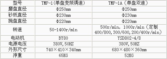 產品概述: TMP-1單盤雙速金相試樣磨拋機 •澳大利亞科學家smeuls提出凡是用固定磨料(如砂輪片、砂輪和金剛石磨盤以及各種砂紙)制備試樣的過程稱為磨光,金相研磨機價格,凡是使用松散磨料(如加入各種磨料微粉懸浮液、噴霧拋光劑、拋光膏)制備過程稱為拋光。 •單盤雙速磨拋機(拋盤、研磨盤)就能完成各種試樣的粗磨、細磨、干磨、濕磨、研磨及拋光等各道工序。 •該機的磨拋盤直徑均大于國內同類產品,全自動金相拋光研磨機,有效增加工作面20-30%有更多不同線速度的選擇。 •本機可選擇安裝PD-1型推移器,金相樣品自動研磨機,能替代手工進行磨拋各道工序。 TMP-1A無級變速金相試樣磨拋機 •變頻調速,金相研磨機,試驗范圍自行設定。 •只需調換磨盤或拋盤和選擇合適轉速即可粗磨、細磨、干磨、濕磨、研磨及拋光等各道工序。 •傳動功率、磨拋盤直徑均大于國內同類產品,金相切片研磨機,可增加有效工作面20-30%,金相試樣自動研磨機,可適應不同材料的制備要求。 •本機可選擇安裝PD-1型推移器,金相拋光研磨機,能替代手工進行磨拋各道工序。 技術參數:
